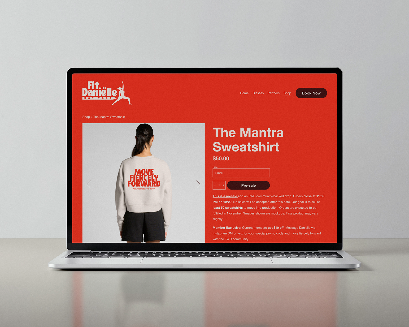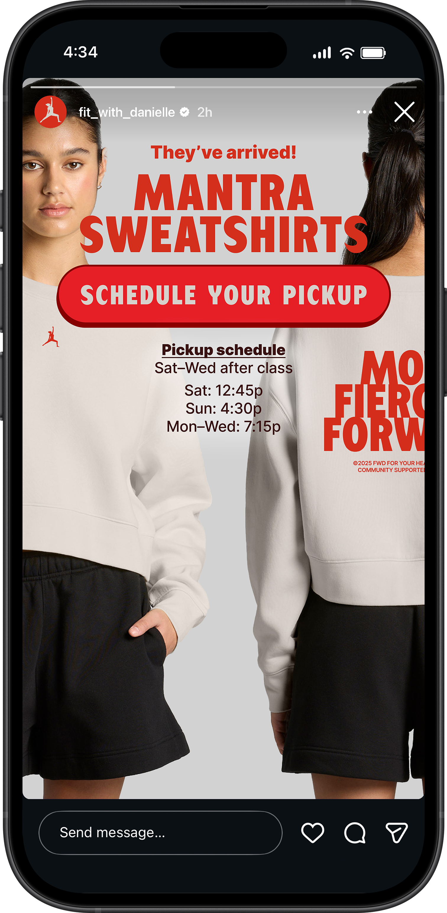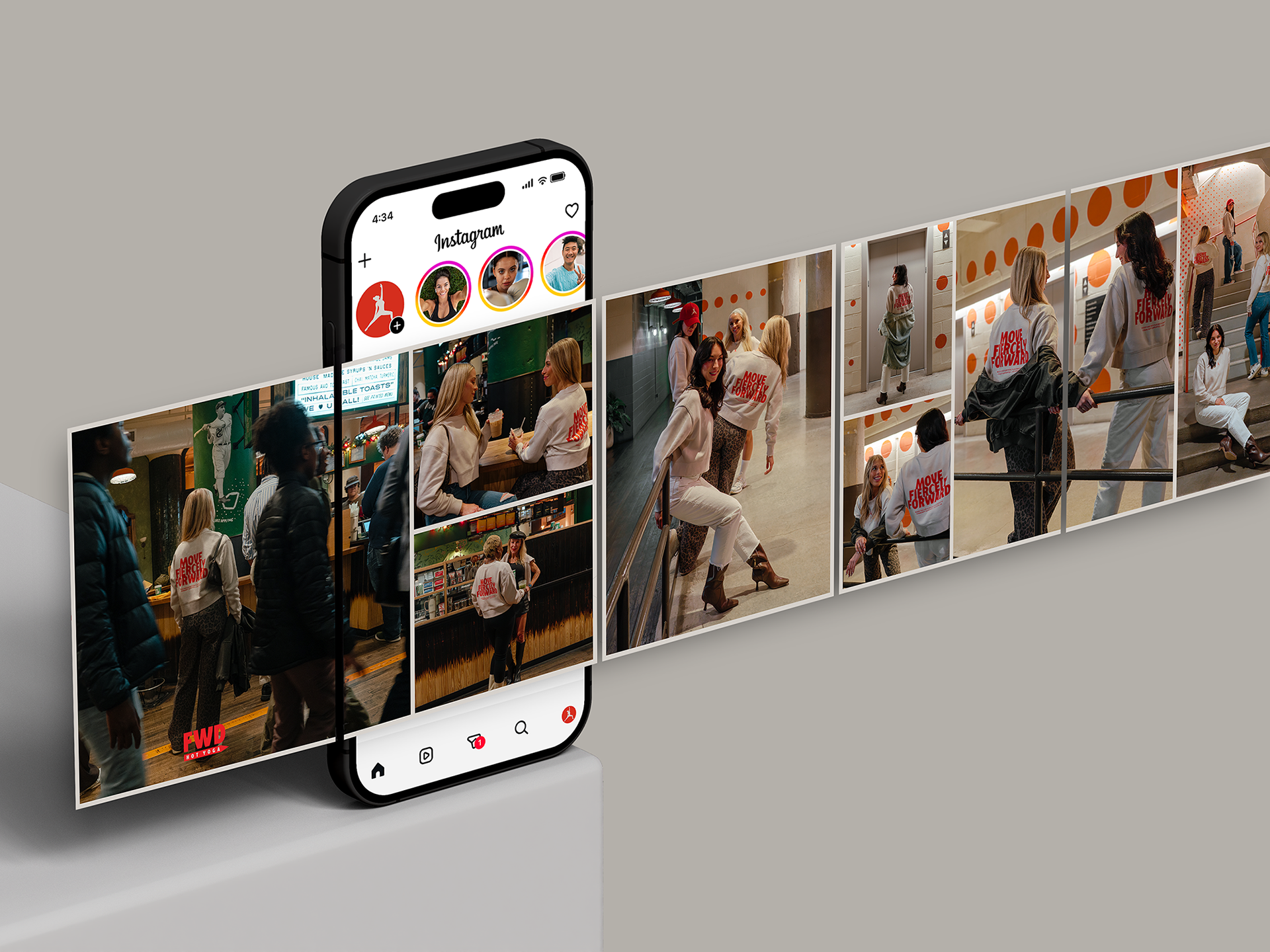 I introduced “Move Fiercely Forward” as a mantra for the community, shaping how the brand shows up across apparel, social, and in-studio moments.